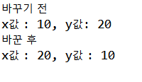 System.out.println("x값 : " + x + ", y값 : " + y);