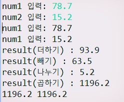 그다음 이렇게 result를 num1 + num2로 변경해주고